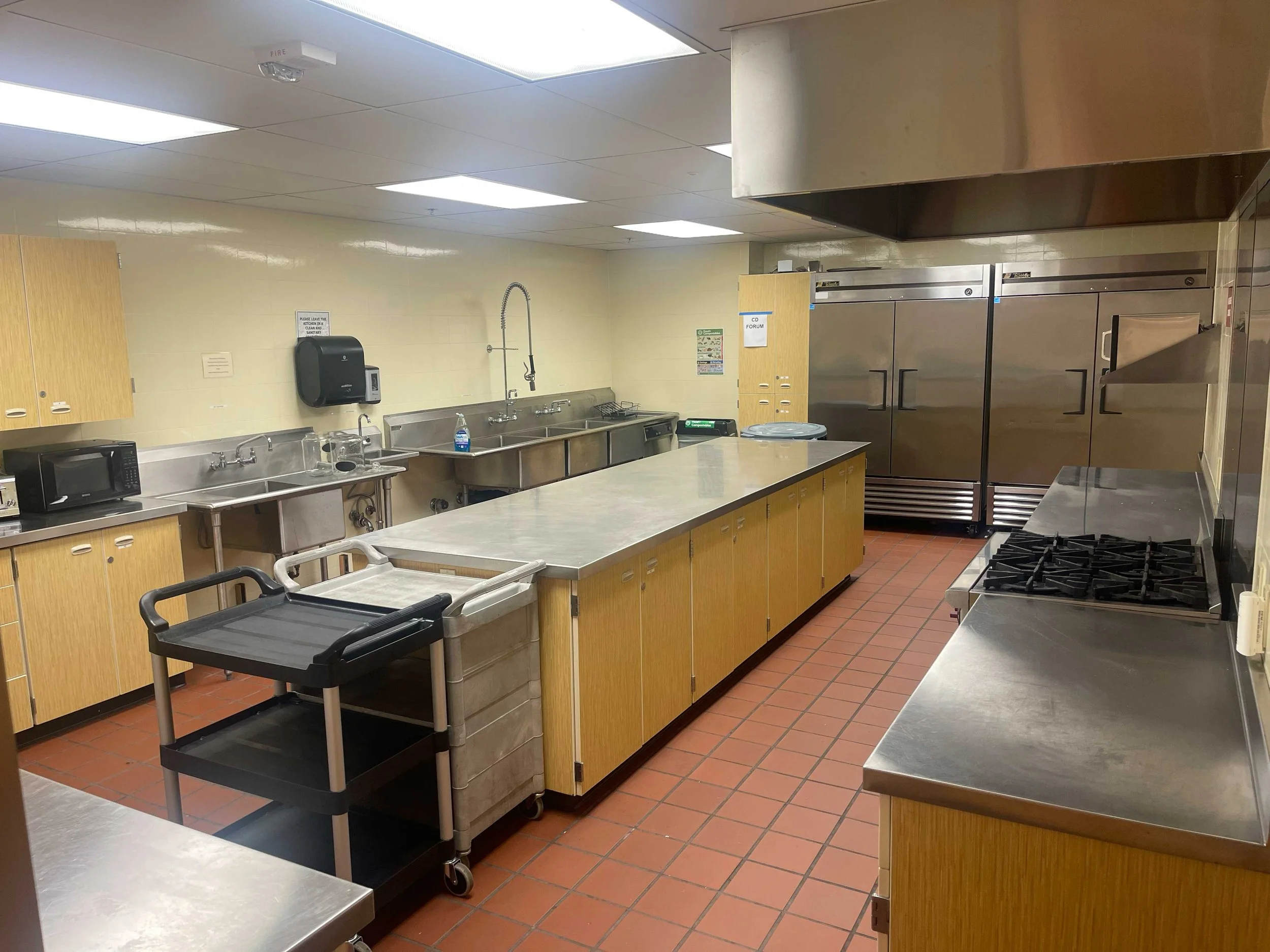 Although attached to the Grand Hall, the Kitchen is a separate room that must be reserved if you want to use it. Comes with gas stoves, a microwave, a washing sink, dishwashing sinks, a drying rack, a refrigerator, and a freezer.